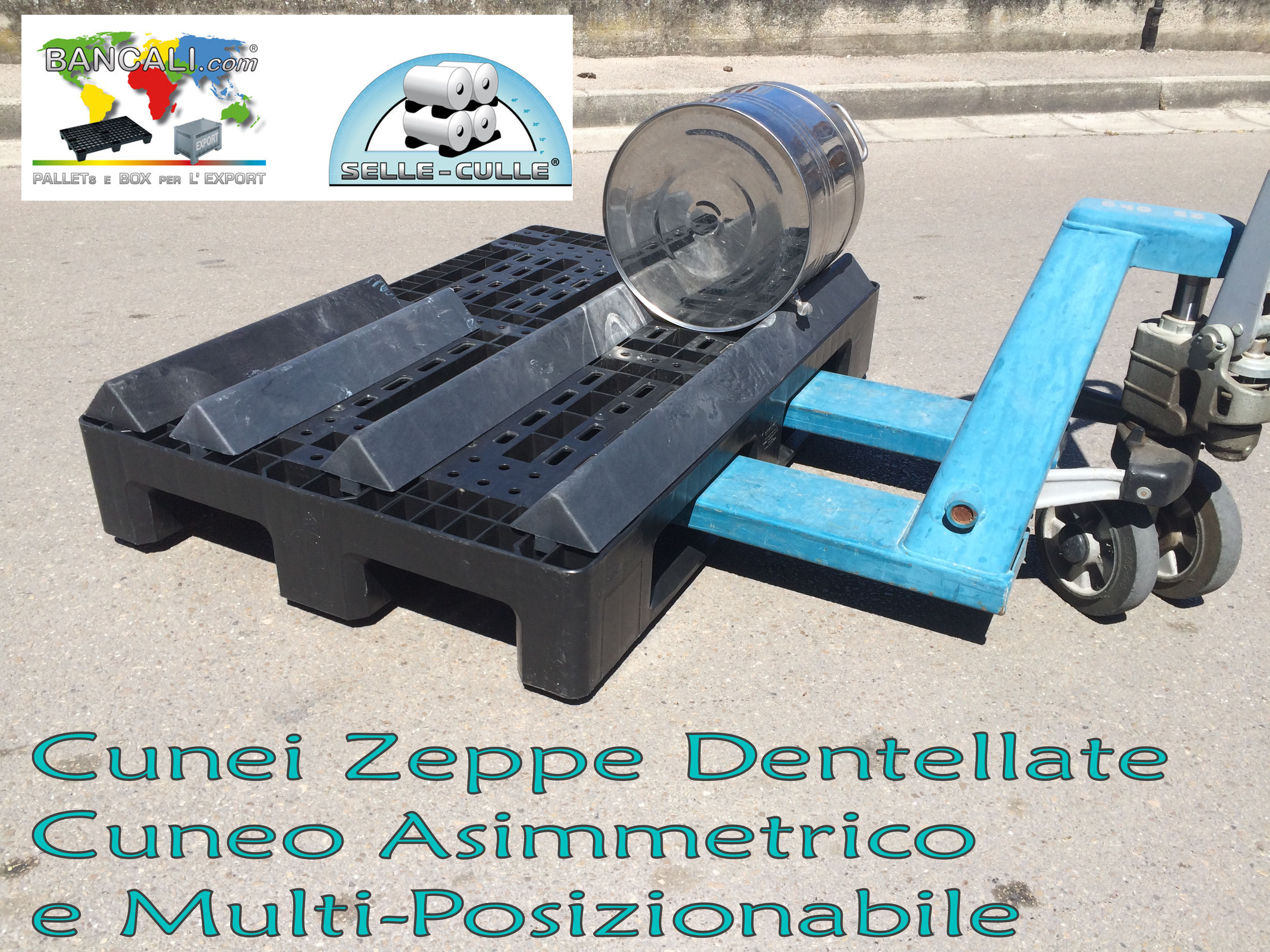 High-performance plastic chock designed to safely stop and secure cylinders, rolls, and bobbins on both plastic pallets and wooden pallets.