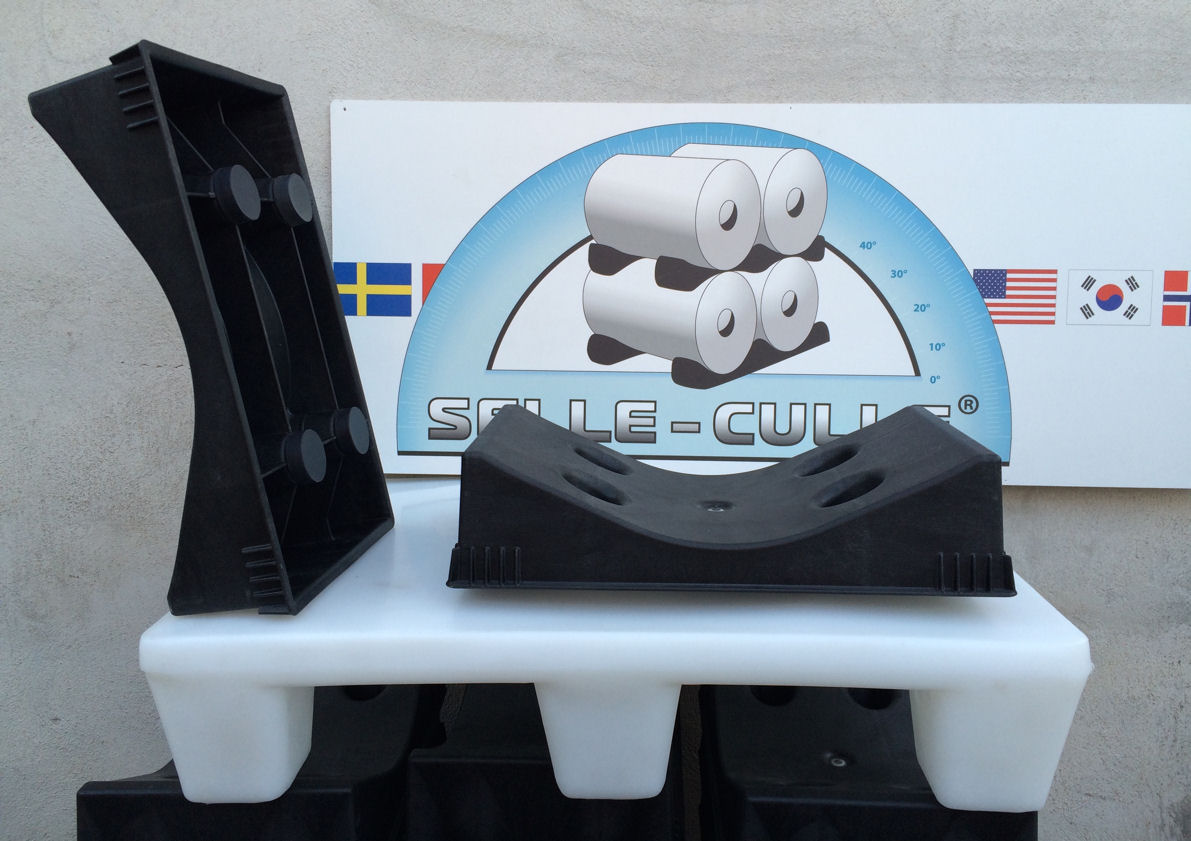 Durable Oval Plastic Cradle made of high-quality Polypropylene (PP), designed to safely support pipes, cylinders, and industrial rolls with a maximum diameter of Ø800 mm (31").